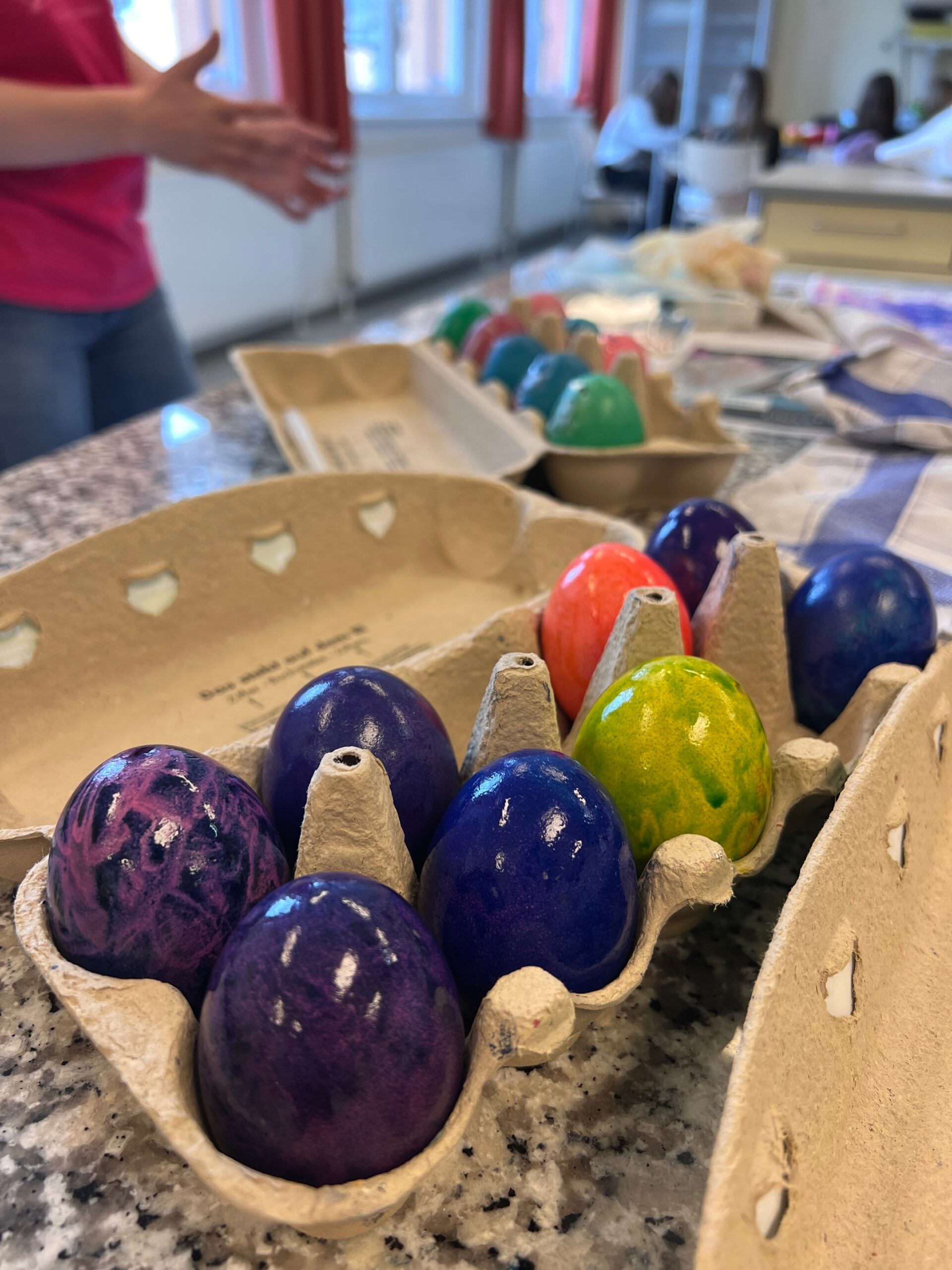 Die Vorfreude auf OSTERN steigt und so wurden im Musisch-Kreativ Unterricht schon viele Ostereier gefärbt und Osterdekoration gebastelt. ![]()