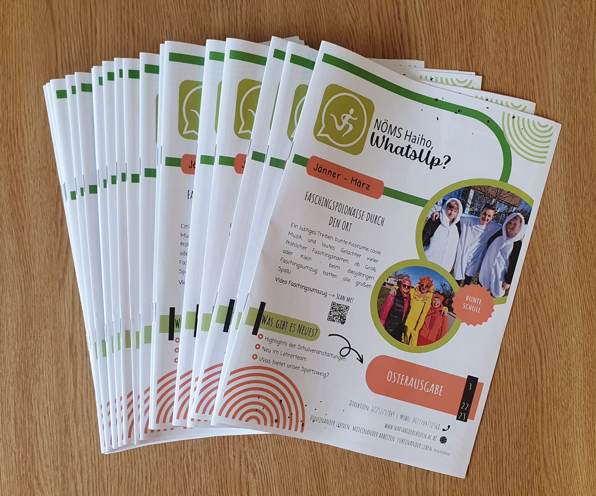 Die neue Ausgabe unserer Schulzeitung "NÖMS Haiho - What'sUp?" ist da und diese wurde bereits gestern und heute an unsere Schüler:innen verteilt!