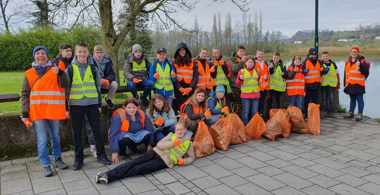 Das Wetter meinte es gut mit uns! ☀️ Die Kinder – ausgestattet mit Handschuhen, Warnwesten und Müllsäcken – waren sehr engagiert und teilweise auch schockiert, wie viel Müll tatsächlich überall herumliegt!