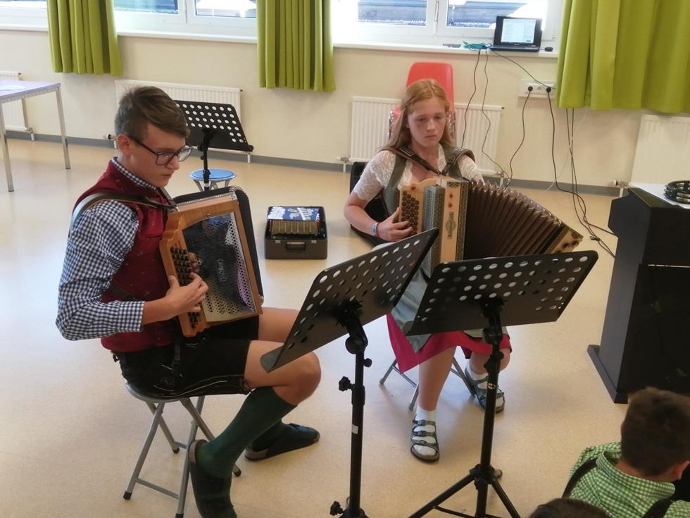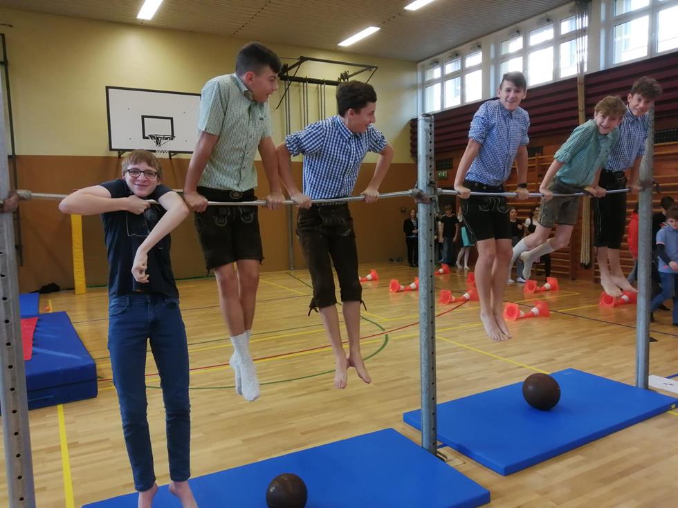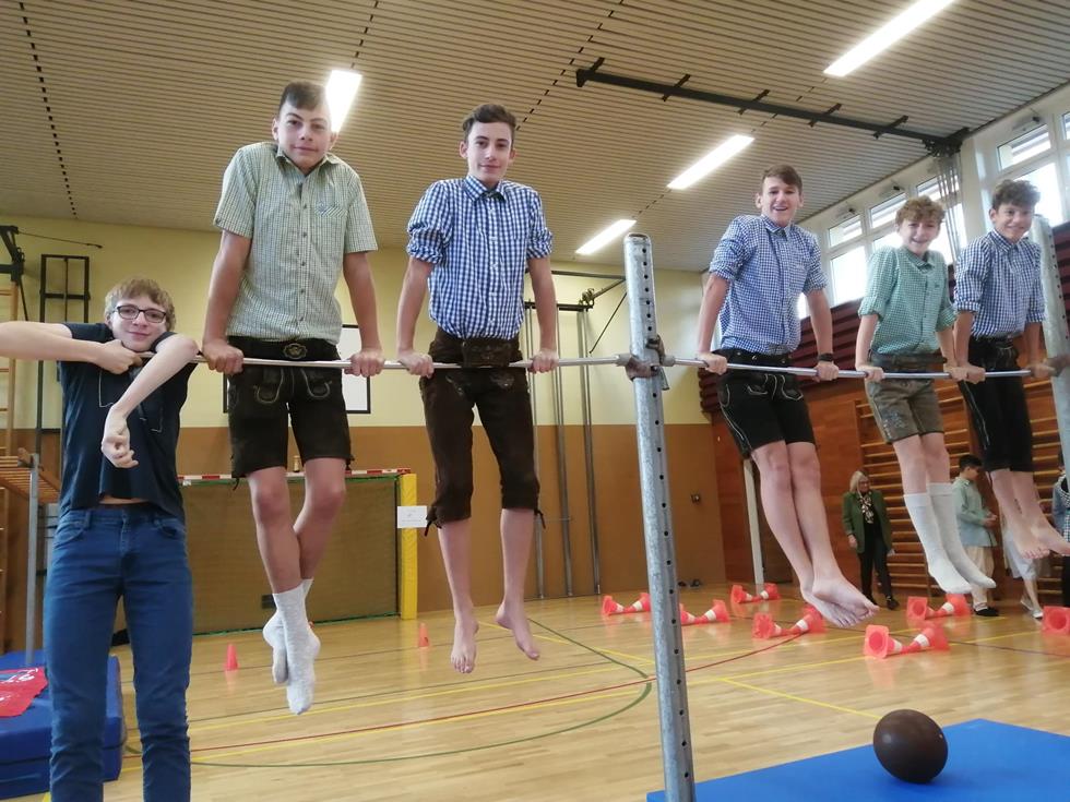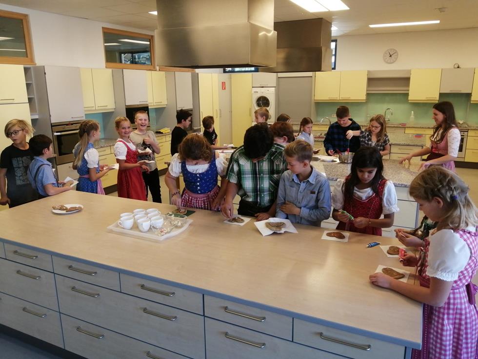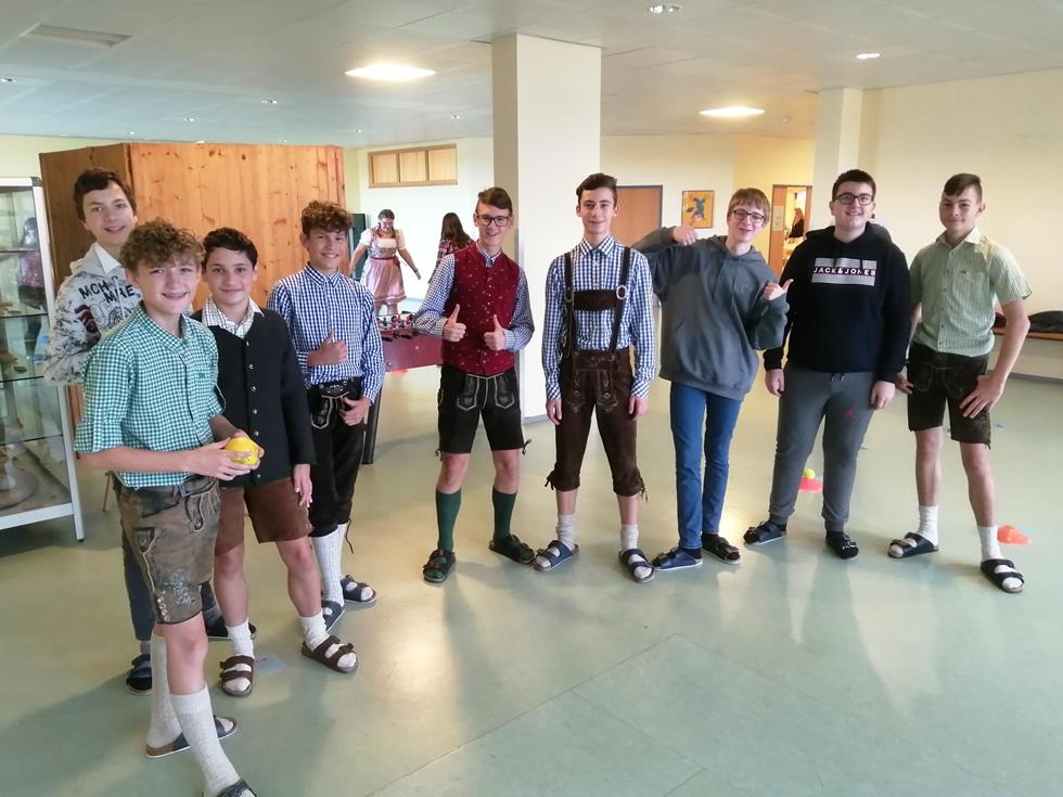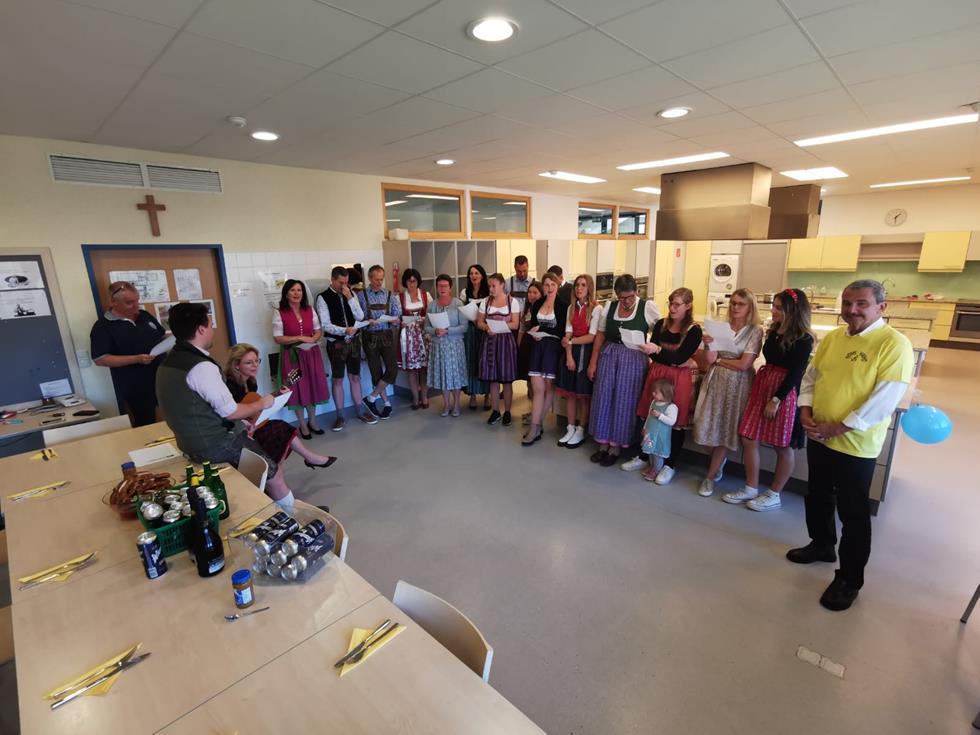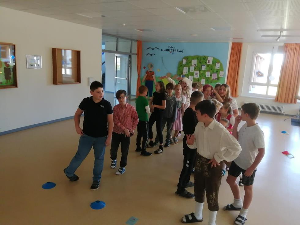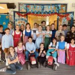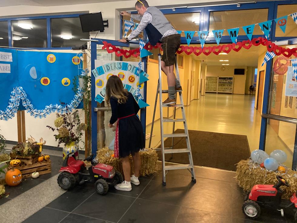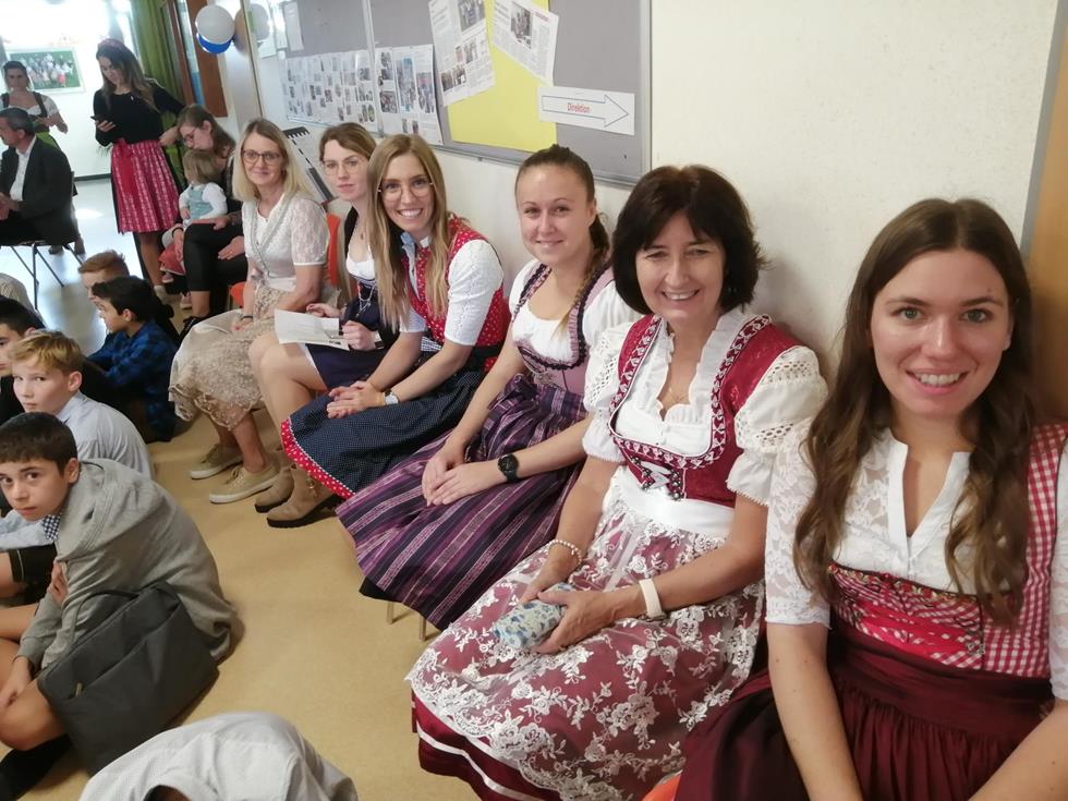 Eini ins Dirndl und in die Lederhose und ab in die Schule. Im Schulhaus erklang zünftige Musik, gespielt von 3 SchülerInnen auf der Steirischen. Zur Jause wurden Brezln geteilt und im gesamten Schulgebäude luden tolle Spielstationen zum Spaß haben und Lachen ein.