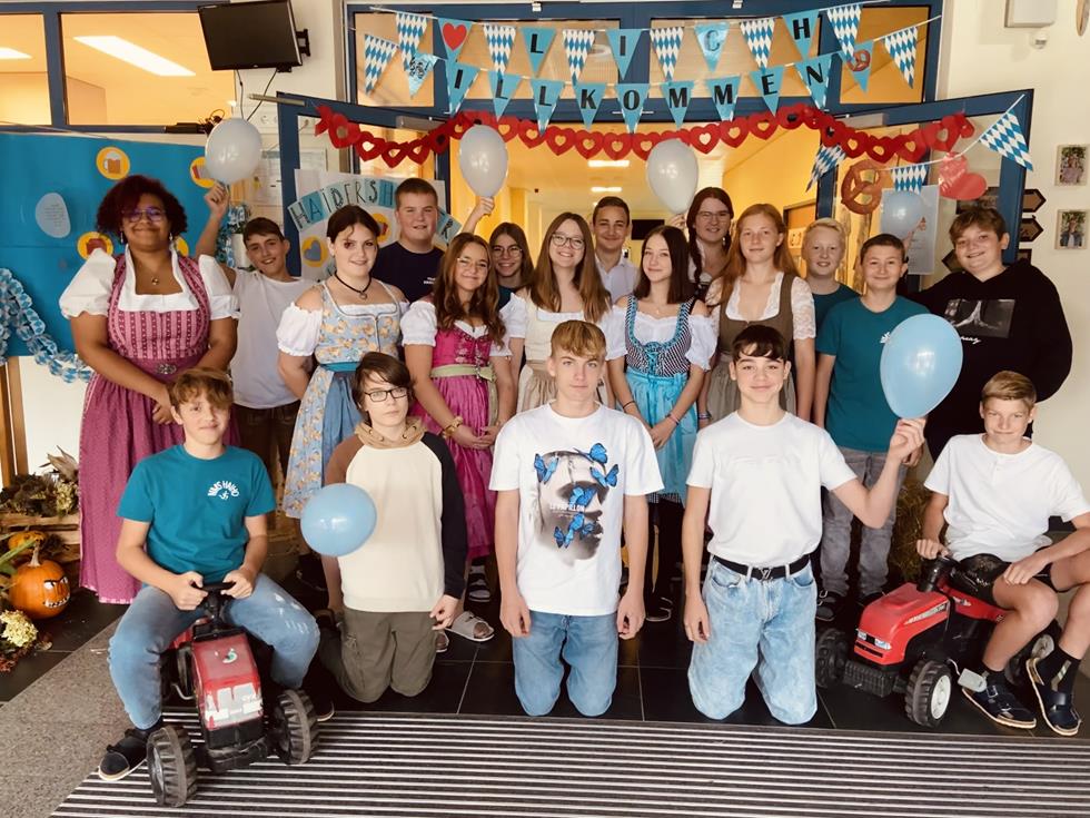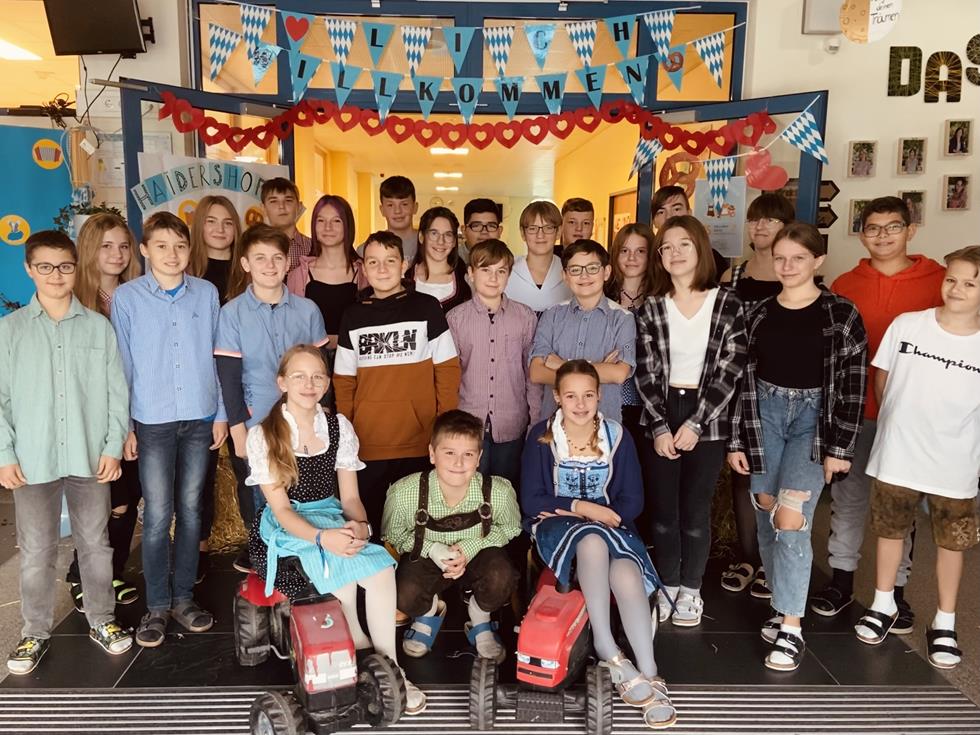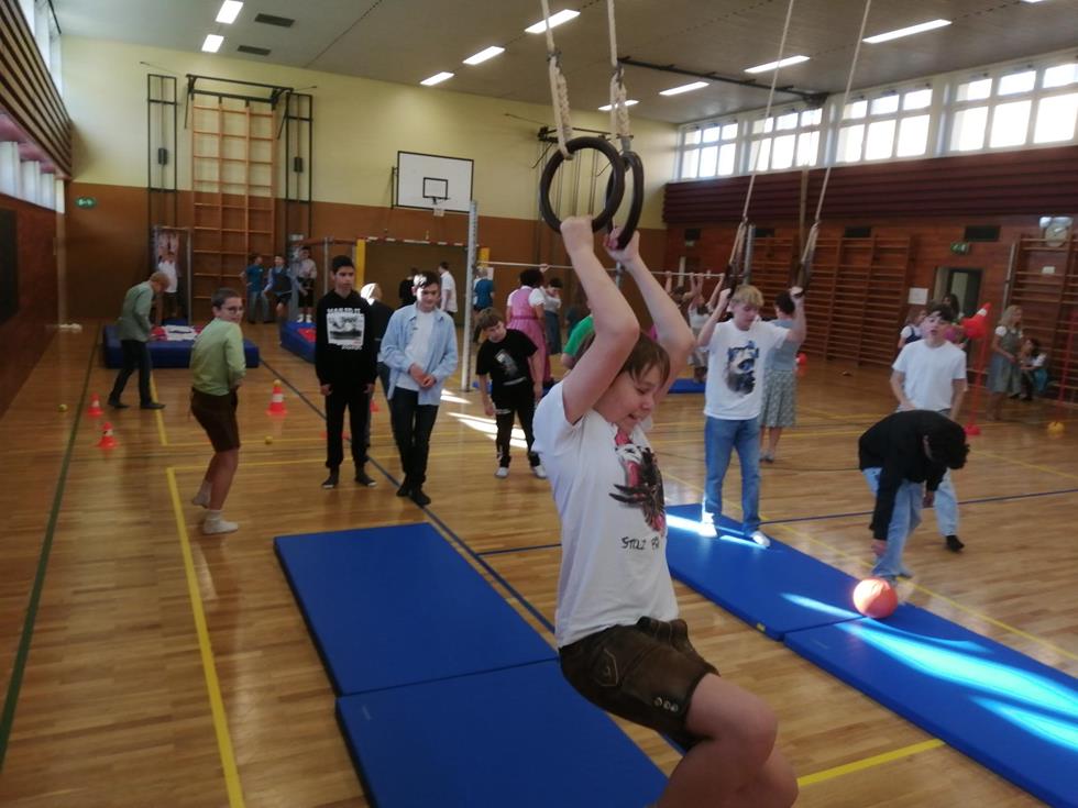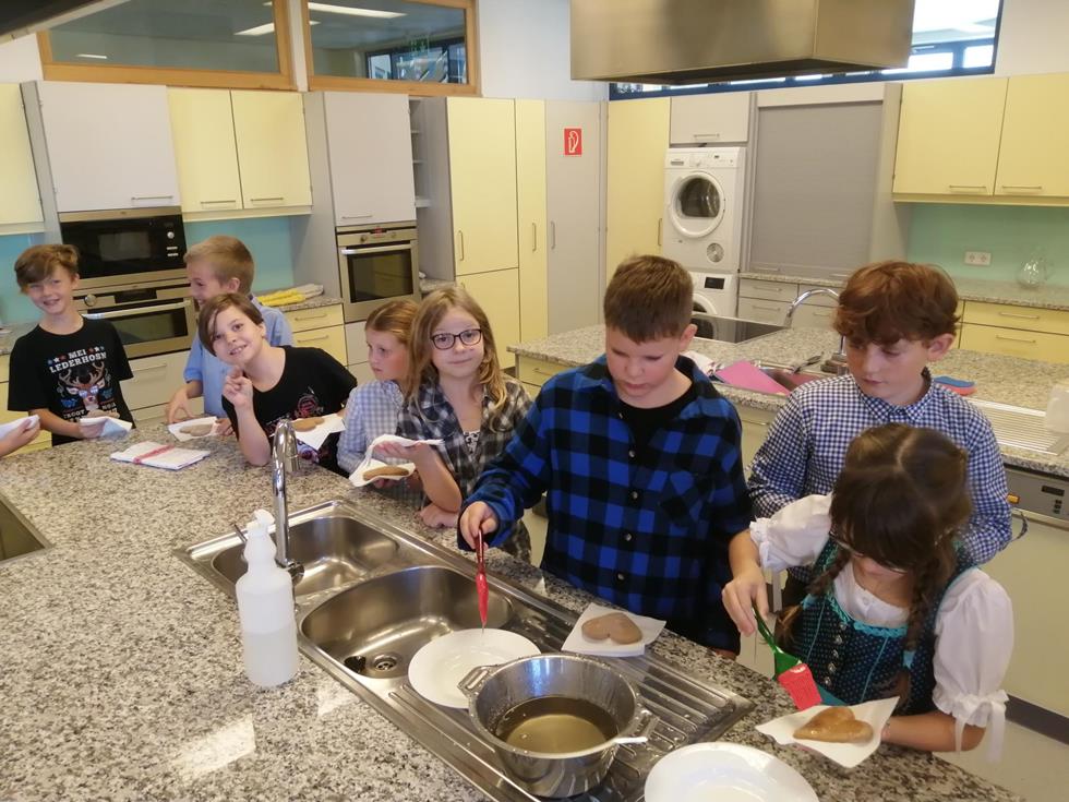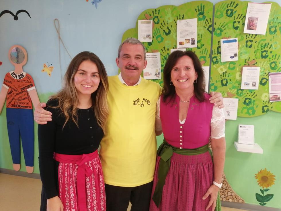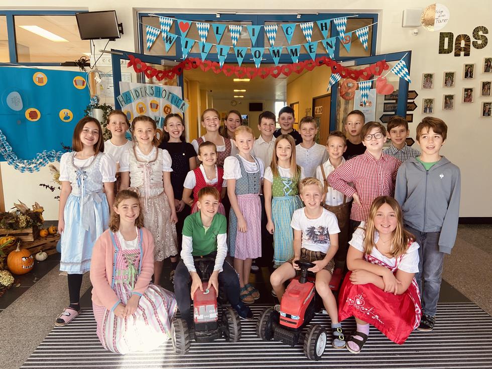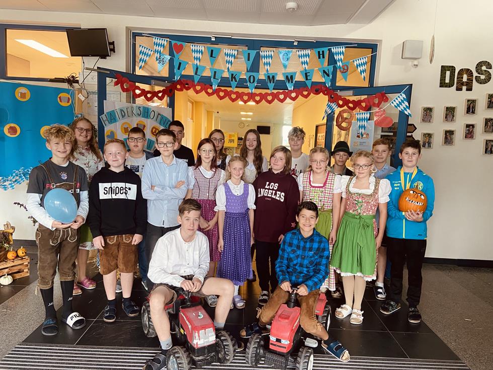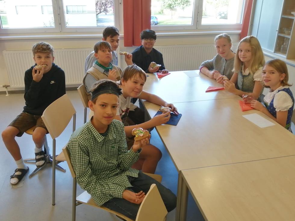 Eini ins Dirndl und in die Lederhose und ab in die Schule. Im Schulhaus erklang zünftige Musik, gespielt von 3 SchülerInnen auf der Steirischen. Zur Jause wurden Brezln geteilt und im gesamten Schulgebäude luden tolle Spielstationen zum Spaß haben und Lachen ein.