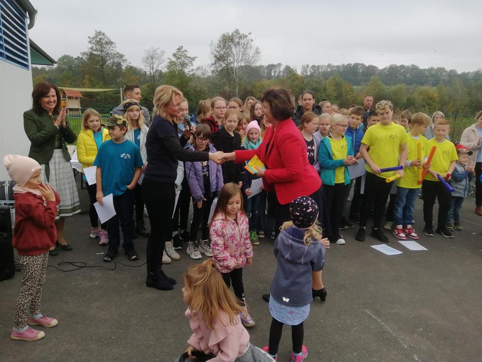 Neben einer Tanzeinlage und einem umgetexteten Lied durften wir im Namen der NÖMS Haidershofen 2 ganz besondere Geschenke überreichen: 2 neue Bobbycars flitzen künftig über den Kindergartenplatz.