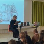 Gespannt hörten die SchülerInnen den Erzählungen der bekannten Kinder- und Jugendbuchautorin Sonja Kaiblinger zu, als sie von Scarry Harry, dem Knochenmann, Vincent, der Fledermaus, den Freunden Otto und Emily und dem Geist Sir Tony berichtete.