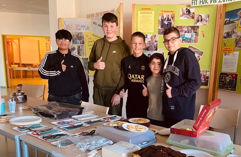 Royar, Khalid, Merzad, Haris, Edin, Eldin und Batuhan verkauften typische Gerichte aus ihren Heimatländern – Baklava, Knaffe (Süßigkeiten), Burek, Cay (Tee), Pudding und Cig Köfte (Wrap) – und spendeten den Erlös für die Erdbebenopfer in der Türkei und in Syrien.