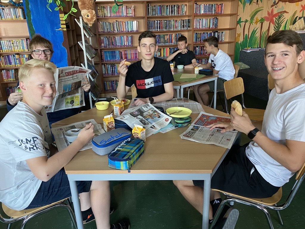 Zuerst gabs Frühstück! Dann wurden verschiedenen Themen von Tageszeitungen, Kurzgeschichten bis zu modernen Märchen in Stationen erarbeitet. Ziel des LBs war, dass die SchülerInnen in gemütlicher Atmosphäre gemeinsam reden bzw. diskutieren.